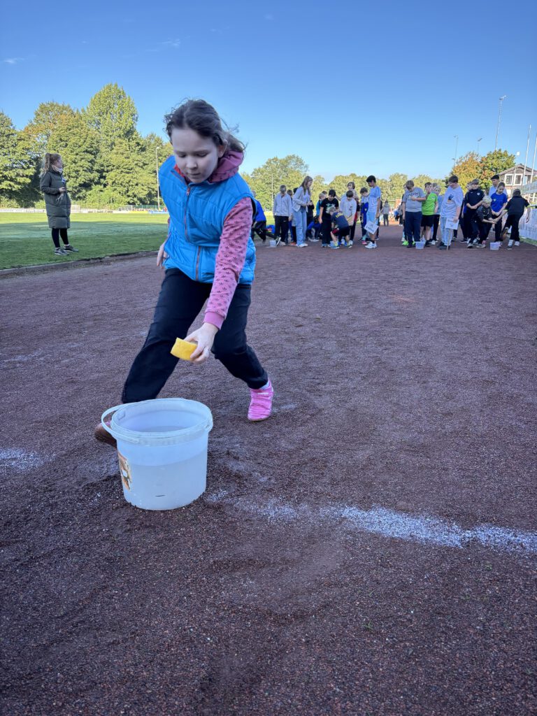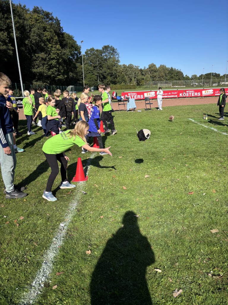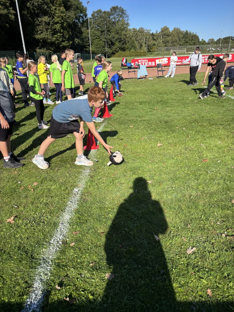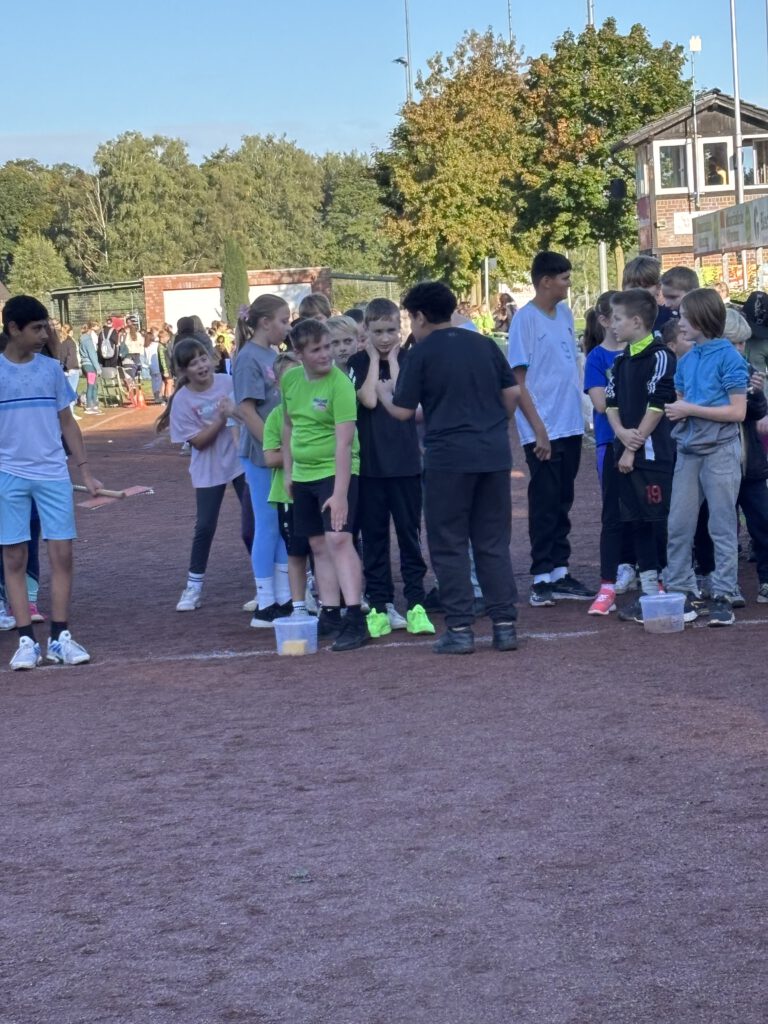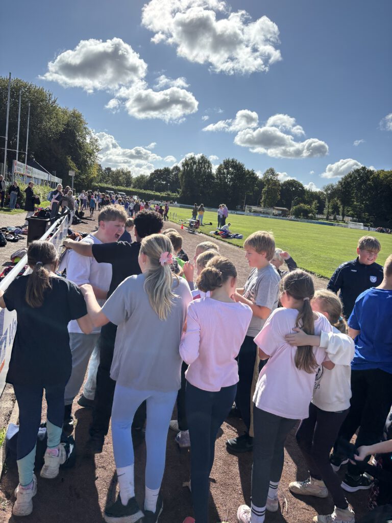 Am 23.09.2025 machten sich die beiden vierten Klassen unserer Schule gemeinsam mit einigen Eltern auf den Weg nach Mesum – natürlich mit dem Fahrrad! Die Gruppe startete gut gelaunt in Hauenhorst und fuhr gemeinsam zur Alexander-von-Humboldt-Schule in Mesum, wo das traditionelle Sportfest stattfand. Bei Disziplinen wie der Wasserstaffel, Müllsortieren oder Reifenrollen konnten die Kinder zeigen was in ihnen steckt. Mit ganz viel Begeisterung, Teamgeist und Spaß waren alle dabei – Anfeuern und Mitfiebern inklusive! Zur Stärkung gab es leckeren Kuchen und Fair-Trade Snacks.
