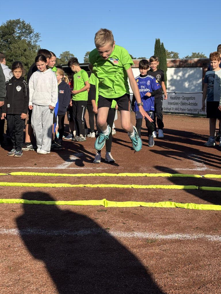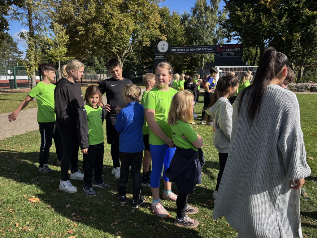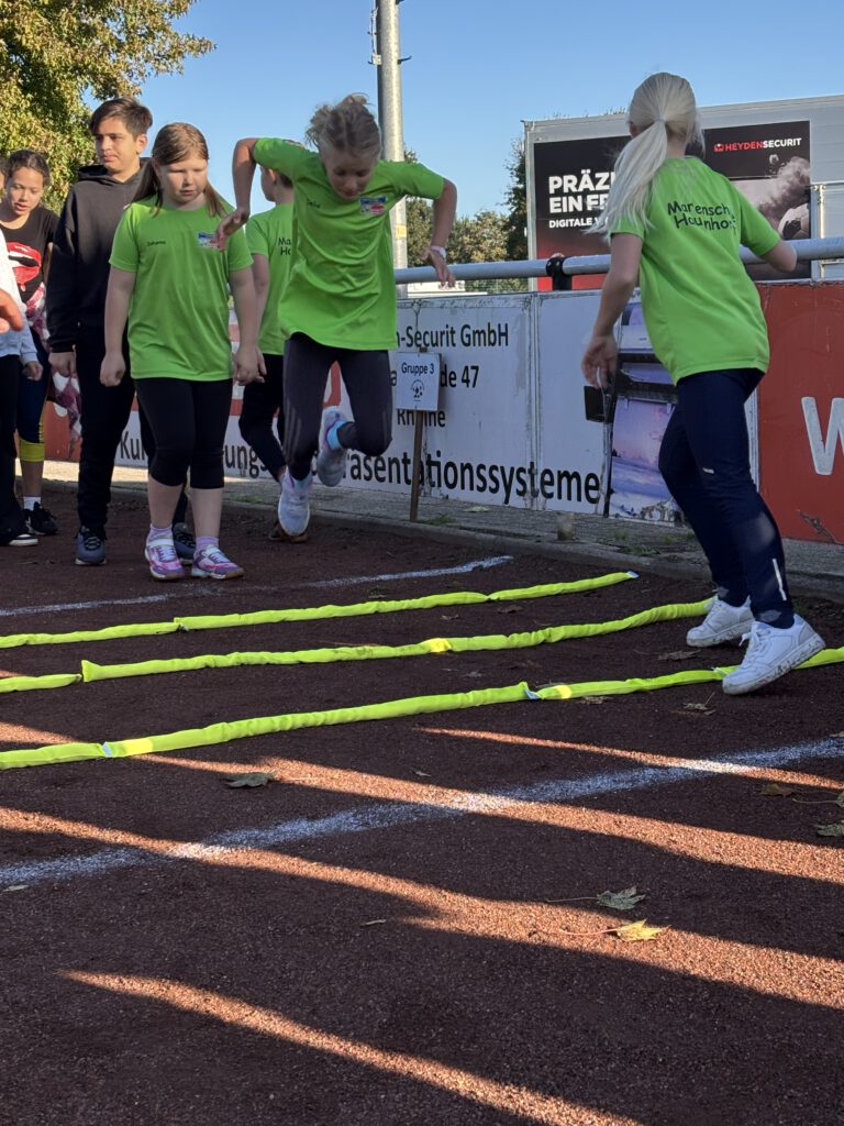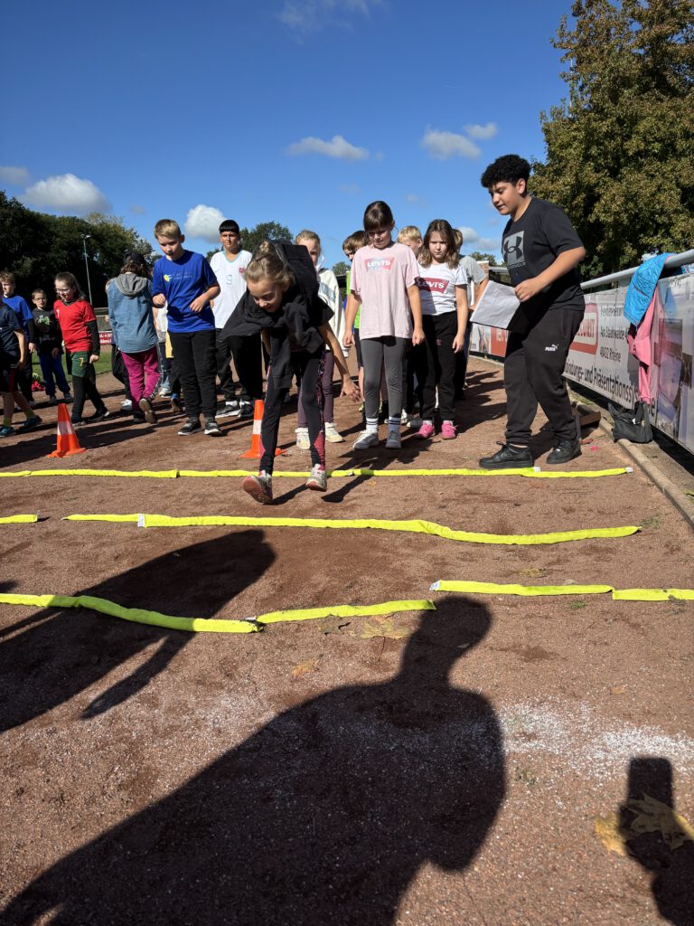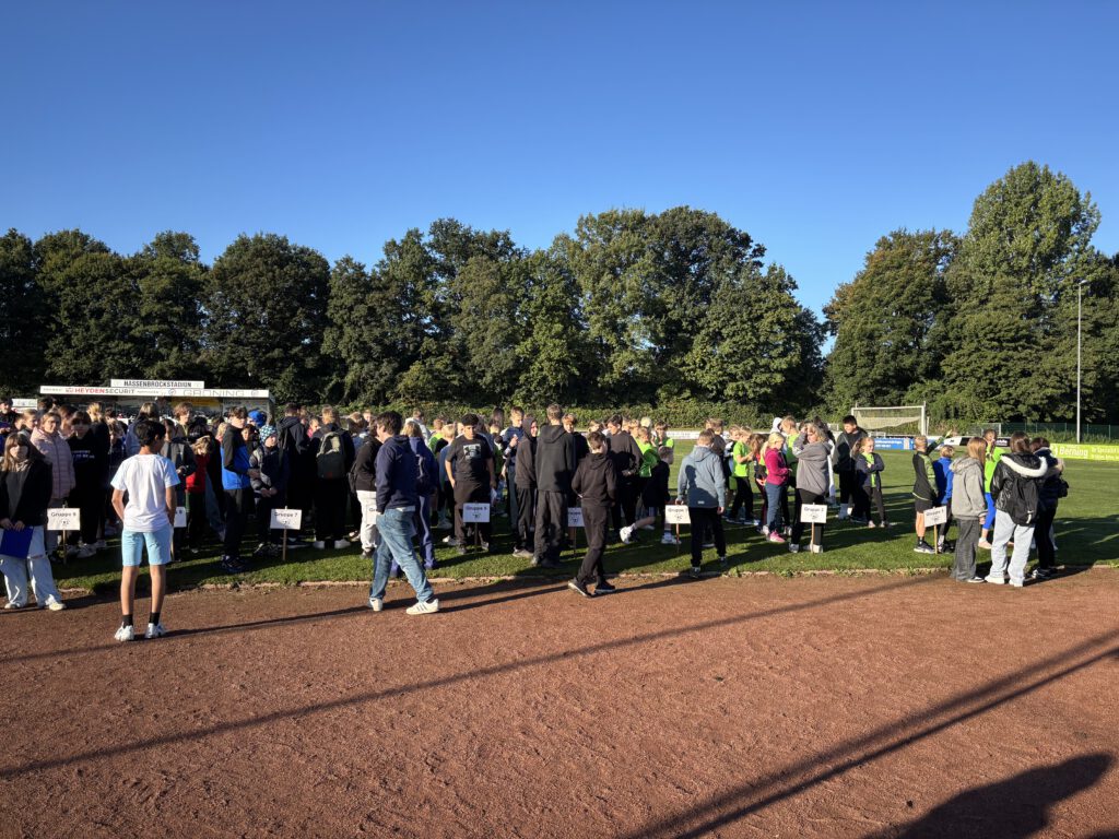 Am 23.09.2025 machten sich die beiden vierten Klassen unserer Schule gemeinsam mit einigen Eltern auf den Weg nach Mesum – natürlich mit dem Fahrrad! Die Gruppe startete gut gelaunt in Hauenhorst und fuhr gemeinsam zur Alexander-von-Humboldt-Schule in Mesum, wo das traditionelle Sportfest stattfand. Bei Disziplinen wie der Wasserstaffel, Müllsortieren oder Reifenrollen konnten die Kinder zeigen was in ihnen steckt. Mit ganz viel Begeisterung, Teamgeist und Spaß waren alle dabei – Anfeuern und Mitfiebern inklusive! Zur Stärkung gab es leckeren Kuchen und Fair-Trade Snacks.