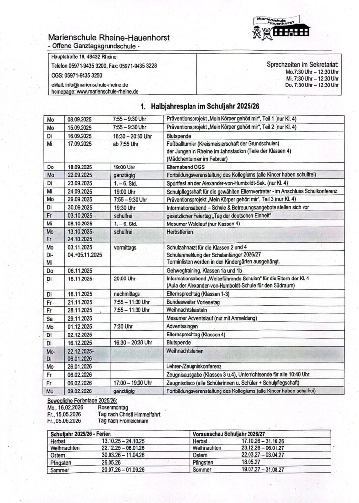 Halbjahresplaner 2025/26, 1. Halbjahr